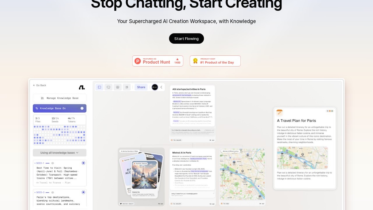 Flowith is an AI-driven creation workspace designed to facilitate endless automation, content creation, and research via its primary agent, Neo. Neo is a perpetually operating AI with limitless steps, tool integrations, and memory context, capable of executing intricate, multi-step creative tasks without limitations. Users can construct dynamic websites, monitor real-time data, create language learning tools, or organize knowledge systems—all within a self-updating AI ecosystem that evolves with use. Flowith supports advanced reasoning and detailed output creation while providing benchmarking through GAIA to assess performance on real-world tasks. It caters to creators, researchers, and developers seeking autonomous, multifunctional AI support.