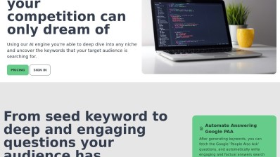 Keywrds.ai is an AI-driven SEO tool designed to assist users in generating keywords, questions, topics, and blog post outlines that align with the needs of their target audience. This tool employs an AI engine to thoroughly explore any niche, revealing the keywords and topics that capture the interest of the target audience. It streamlines the process of responding to Google's "People Also Ask" questions and allows users to create topics that are controversial, thought-provoking, and unconventional. Additionally, Keywrds.ai offers estimated search volume, keyword difficulty, and other valuable data to aid users in making informed decisions about which keywords to focus on.