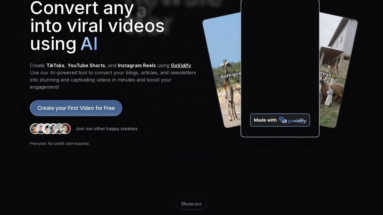 GoVidify is an AI-driven platform crafted to convert text or URL-based content into captivating short videos, like TikToks, YouTube Shorts, and Instagram Reels. It allows users to produce videos with adjustable text styles, multilingual voiceovers, and various background music options. This tool is perfect for content creators, marketers, and businesses aiming to boost their online visibility and engagement on video-centric platforms without needing advanced video editing expertise. By simplifying the transformation of blogs, articles, tweets, newsletters, and more into visually appealing and shareable video content, GoVidify enhances engagement and potentially drives increased traffic and audience interaction.