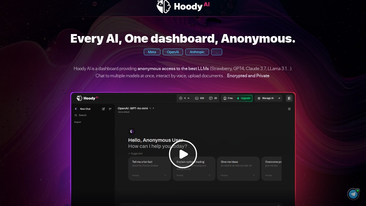 Hoody AI is a privacy-centric platform offering anonymous access to a variety of AI models from leading providers such as OpenAI, Meta, and Google. It employs sophisticated encryption and anonymization methods to safeguard users' identities, IP addresses, and interactions, enabling them to work with multiple AI models via one intuitive interface. Those worried about privacy, including researchers, developers, and users in restricted areas, may opt for Hoody AI to utilize AI services without risking their personal data or being monitored.