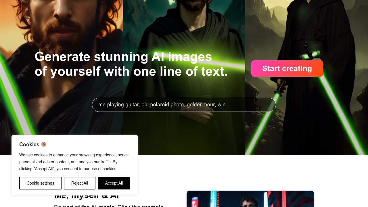 ImagineMe is an online service allowing users to produce AI art of themselves by entering a text description. Users can create a personal model by uploading 10-20 high-quality photos of themselves. Once the model completes its training, users can generate images by choosing their model and typing any ideas they have. The platform also offers inspiration and highlights effective prompts. Additionally, it provides credits that customers can buy at a reduced price.