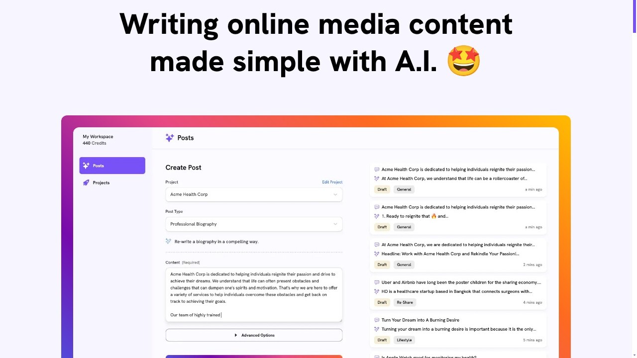 JibeWith is an AI-driven platform designed to simplify the creation of online media content. It offers pre-configured post templates, enabling users to swiftly produce content without the complexity of prompt engineering. Additionally, it permits users to tailor their content to better suit their intended audience and organize all their posts within distinct projects. JibeWith provides a free trial that includes 20 credits.