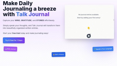 TalkJournal.io is a cutting-edge platform powered by AI that merges voice journaling with language learning functionalities. It enables users to enhance their speaking abilities with the help of AI tutors offering immediate feedback on both pronunciation and fluency, while also serving as a personal audio journal for self-reflection. The platform accommodates multiple languages, providing tools for tracking progress and customized suggestions. It is perfect for language enthusiasts aiming to improve their verbal skills without the need for scheduled sessions with human tutors and offers a private, non-judgmental space for vocal expression. This makes it exceptionally beneficial for busy individuals or those who experience anxiety about speaking, as it can be accessed anytime, anywhere.