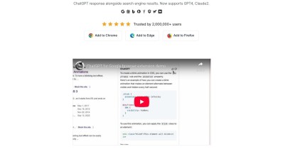 Displays ChatGPT's replies next to search engine outcomes. It can be installed as an extension on Chrome and Firefox browsers.