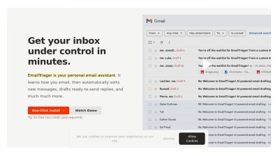 EmailTriager is an AI-driven application that generates email responses on behalf of users. It enables the creation of automatic email replies without needing to download any software or utilize a Chrome extension. Users just need to instruct EmailTriager in simple English, and the generated responses will appear in their inbox.