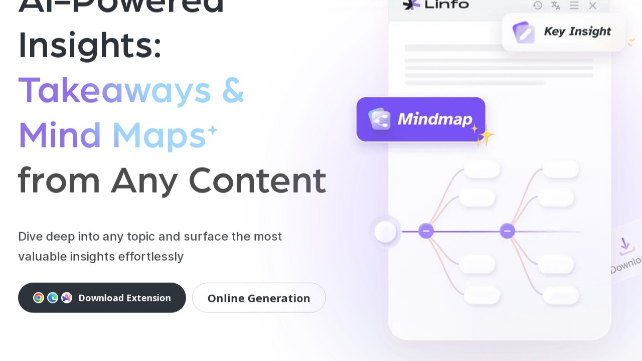 Linfo.ai is a sophisticated AI-driven tool for summarization and mind mapping, designed to make it easier to consume extensive content like articles, blogs, papers, and YouTube videos. It effectively distills information into clear, well-organized summaries and mind maps, serving as a beneficial tool for those seeking to improve information management and boost productivity. This tool can be particularly useful for students, professionals, and anyone interested in saving time while staying updated, as it helps streamline research, study efficiently, and swiftly manage large quantities of content.