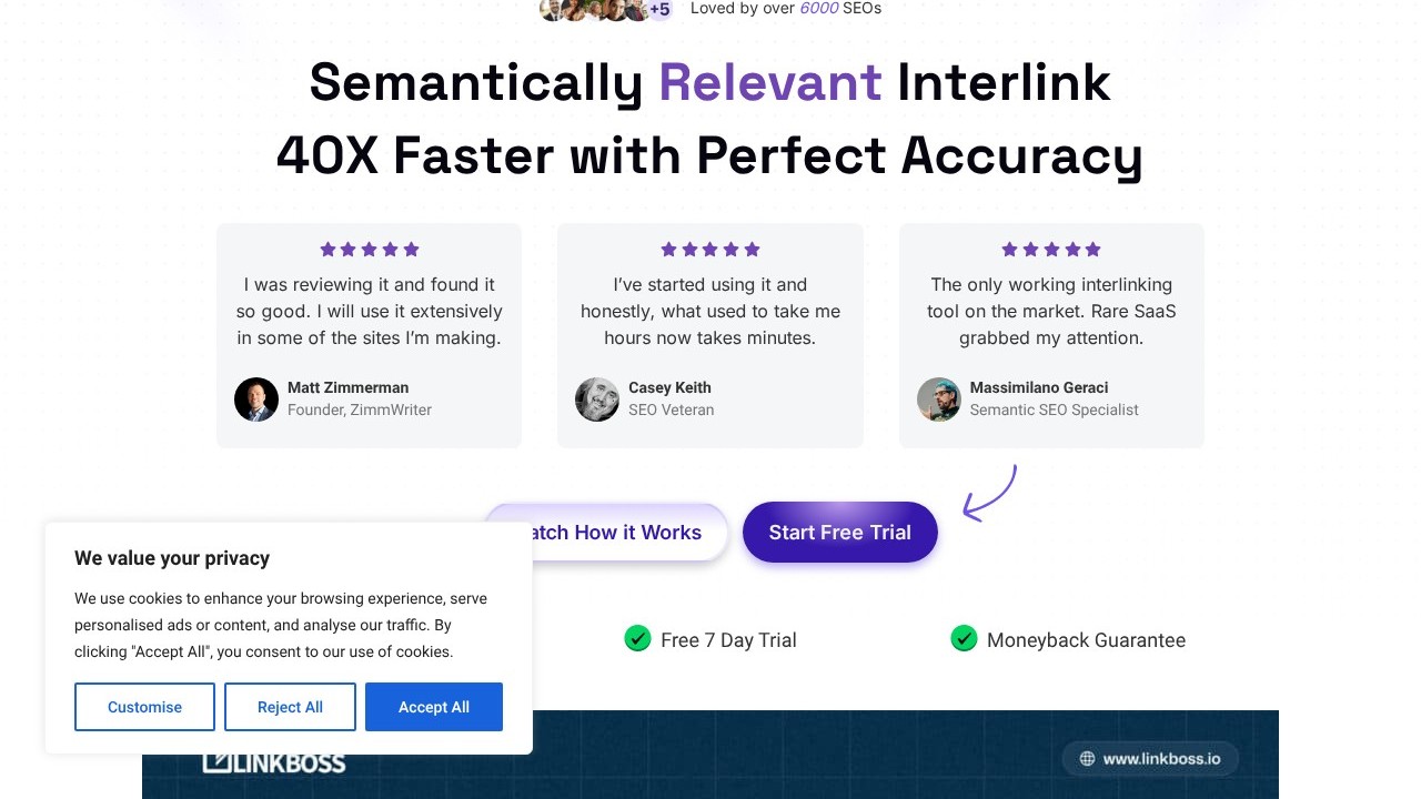 LinkBoss.io is an AI-driven solution that automates and enhances internal linking on WordPress sites. It evaluates site content to recommend pertinent links, supports bulk interlinking, forms topic clusters, and offers detailed reports. Users may opt for LinkBoss to save time, boost SEO efficiency, improve user experience, and effectively manage multiple sites. Its sophisticated AI features, dedicated focus on internal linking, and easy-to-use interface make it an essential tool for SEO experts, agencies, businesses, and content creators aiming to optimize their internal linking approach.