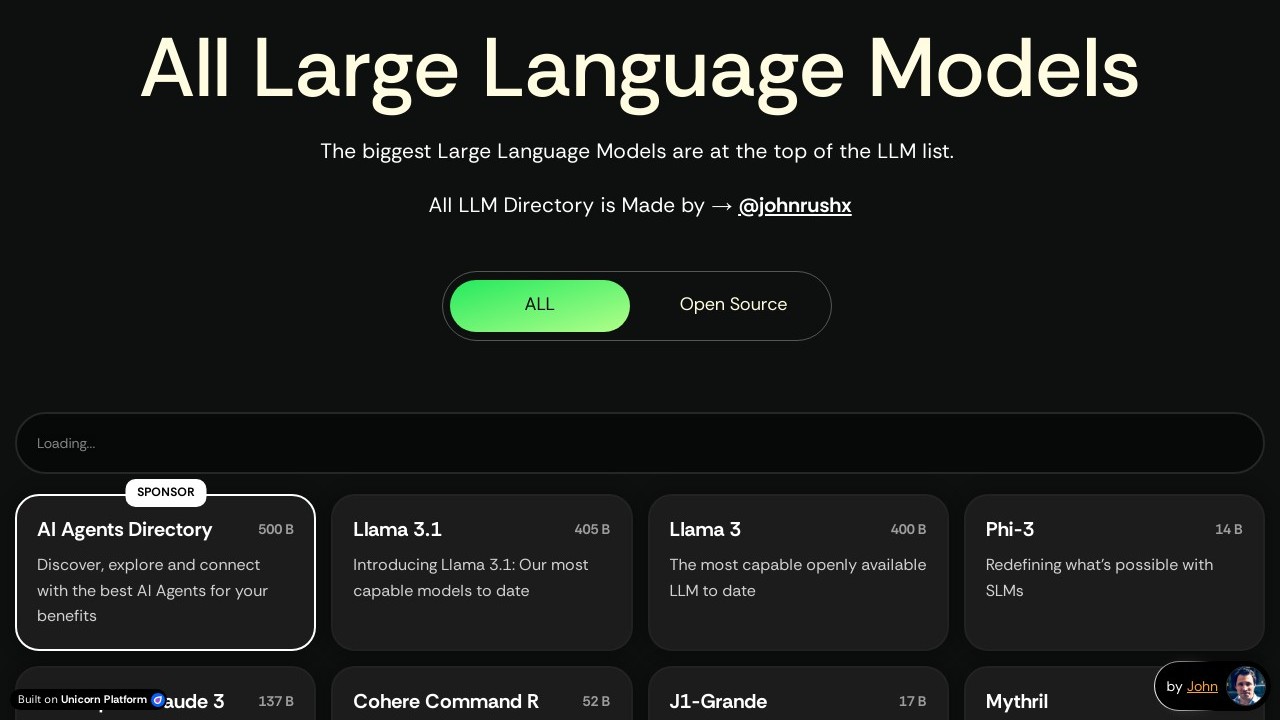 The "All Large Language Models Directory" (LLM List) serves as an online tool that aggregates an extensive array of large language models (LLMs) suited for a variety of uses. This directory benefits developers, researchers, and companies by facilitating the search and evaluation of different LLMs for tasks like text generation, language translation, and data analysis. It encompasses both commercial and open-source options, providing detailed descriptions and comparisons to aid users in finding the ideal model for their requirements. Utilizing this resource allows individuals to swiftly pinpoint and understand the functionalities of numerous LLMs, potentially conserving time and resources in crafting AI-powered solutions.