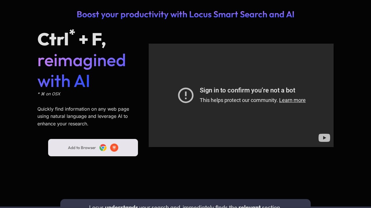 Locus Extension is a Chrome browser add-on powered by AI that revolutionizes browsing content and synthesizing information. It upgrades the typical CTRL+F search using natural language processing, enabling users to swiftly locate specific details in web pages and PDFs. Additionally, the tool provides AI-based summarization, research support, and note-taking capabilities. Aimed at students, researchers, professionals, and anyone managing substantial online data, Locus Extension seeks to boost productivity and efficiency in tasks related to reading, researching, and information management.
