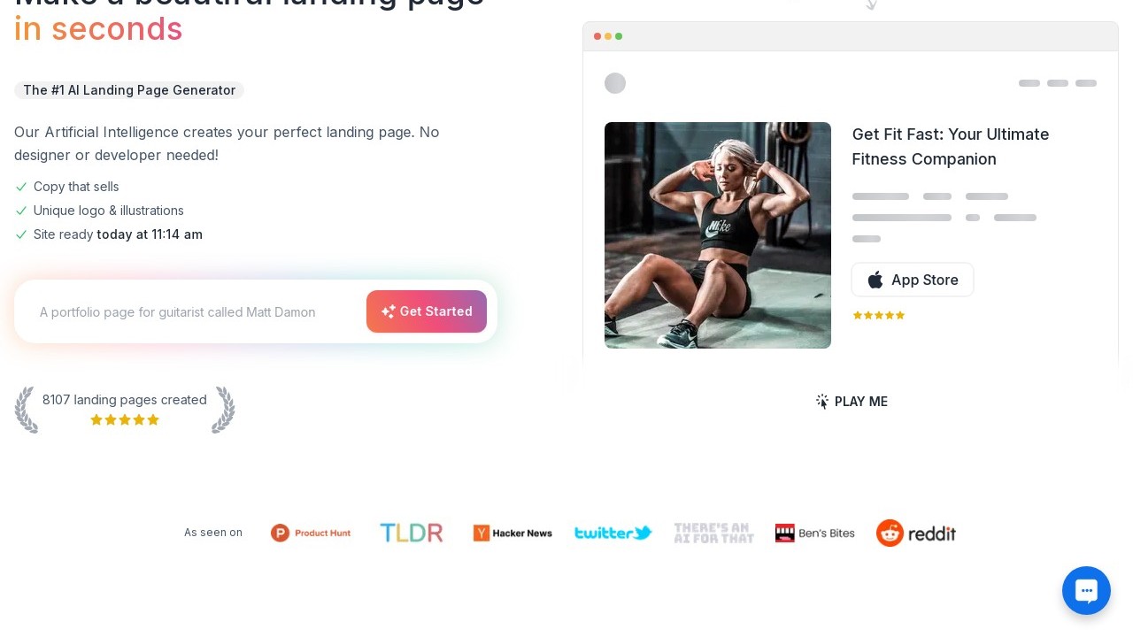 MakeLanding is an AI-driven website creator that enables users to craft stunning landing pages in an instant, eliminating the necessity for a designer or developer. Featuring distinctive copywriting, logos, and illustrations, along with the capability to connect to any call-to-action, the MakeLanding tool is ideal for businesses, podcasts, mobile apps, courses, and more. Users can personalize the content with images, text, buttons, and additional features, and the websites are responsive, speedy, and optimized for SEO.