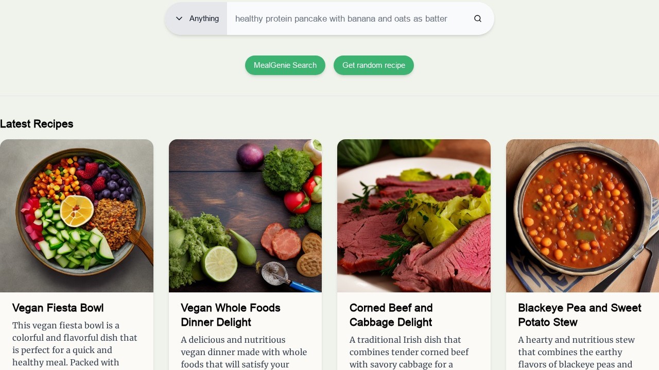 MealGenie is an AI-powered tool designed to assist users in finding vegan recipes. It offers a variety of recipes for breakfast, snacks, and dinners, along with tips on preparation. Users can explore random recipes and view the newest additions to the recipe database.