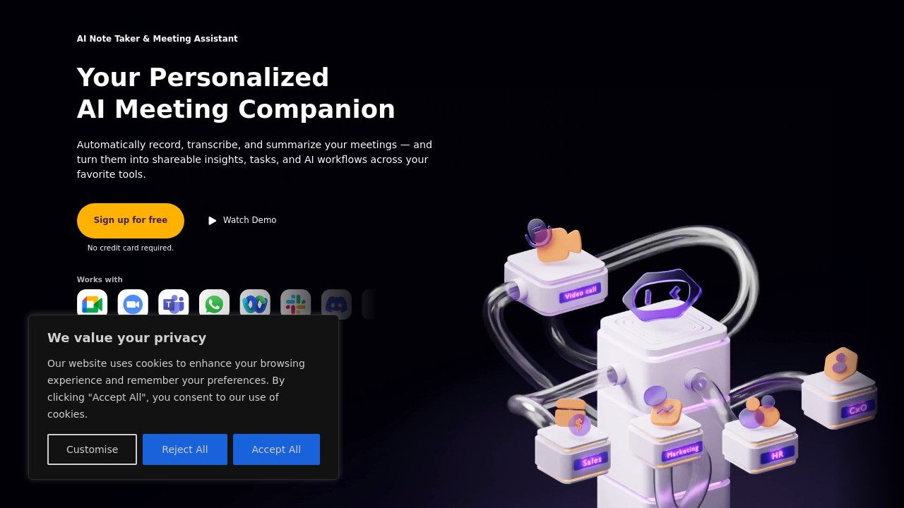 MeetGeek is an AI-powered meeting assistant designed to enhance the effectiveness of meetings. It automatically captures audio, creates transcriptions, generates summaries, and highlights key points and keywords. Additionally, it offers meeting insights, workflow and integration capabilities, personalized branding and pricing options, as well as support for multiple languages. MeetGeek is suitable for customer calls, team meetings, training sessions, onboarding, interviews, and online classes.
