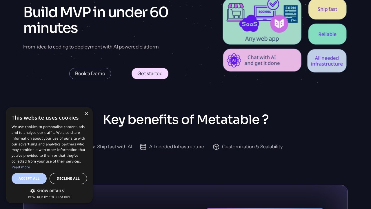 Metatable.ai is an AI-driven platform designed to simplify the software development process by automating code creation, deployment, and documentation. Utilizing natural language processing, the platform assists users, ranging from entrepreneurs to developers, in building and launching applications with minimal technical skills. By integrating AI support with a strong Rust-based framework, Metatable.ai notably decreases development time and expenses, making it perfect for quickly developing MVPs, customized business applications, or scaling current software without the need for extensive coding expertise or large development teams.