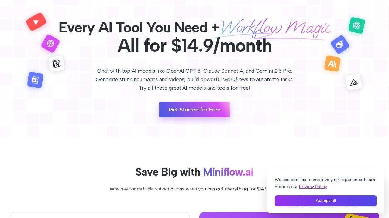 Miniflow serves as a comprehensive platform for AI workflow automation, allowing users to integrate multiple AI tools through an easy-to-use visual, no-code interface. By employing simple drag-and-drop features, it empowers anyone to develop intricate AI applications by linking various tools such as image generators, text editors, translators, and advanced language models like GPT-4o. People utilize Miniflow to enhance content creation, automate monotonous tasks, and craft personalized AI solutions without needing technical skills, thereby saving time and boosting productivity while accessing state-of-the-art AI functionalities within a unified setting.