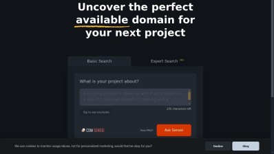 ComSensei.com is an AI-driven platform developed to help individuals and businesses discover the perfect domain name for their online presence. Utilizing cutting-edge algorithms, it evaluates user input like keywords or business ideas to produce a list of inventive, pertinent, and available domain names. Users might choose ComSensei.com to simplify the often-daunting domain selection process, ensuring they obtain a memorable and effective URL that matches their brand identity, boosts their digital marketing strategies, and connects with their target audience.