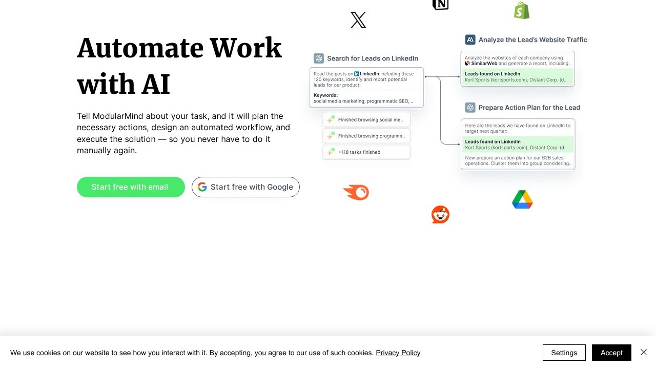 ModularMind is a platform designed to link AI models for boosting productivity workflows. Featuring a no-code interface, it enables users to easily develop custom workflows, automate repetitive tasks, and compile a library of productivity tools. The platform supports cutting-edge machine learning models and allows for integration with existing models. ModularMind seeks to optimize work processes, remove the need for starting from scratch, and deliver an unparalleled no-code building experience. It provides free access to essential features and promotes community interaction for sharing tips and insights.