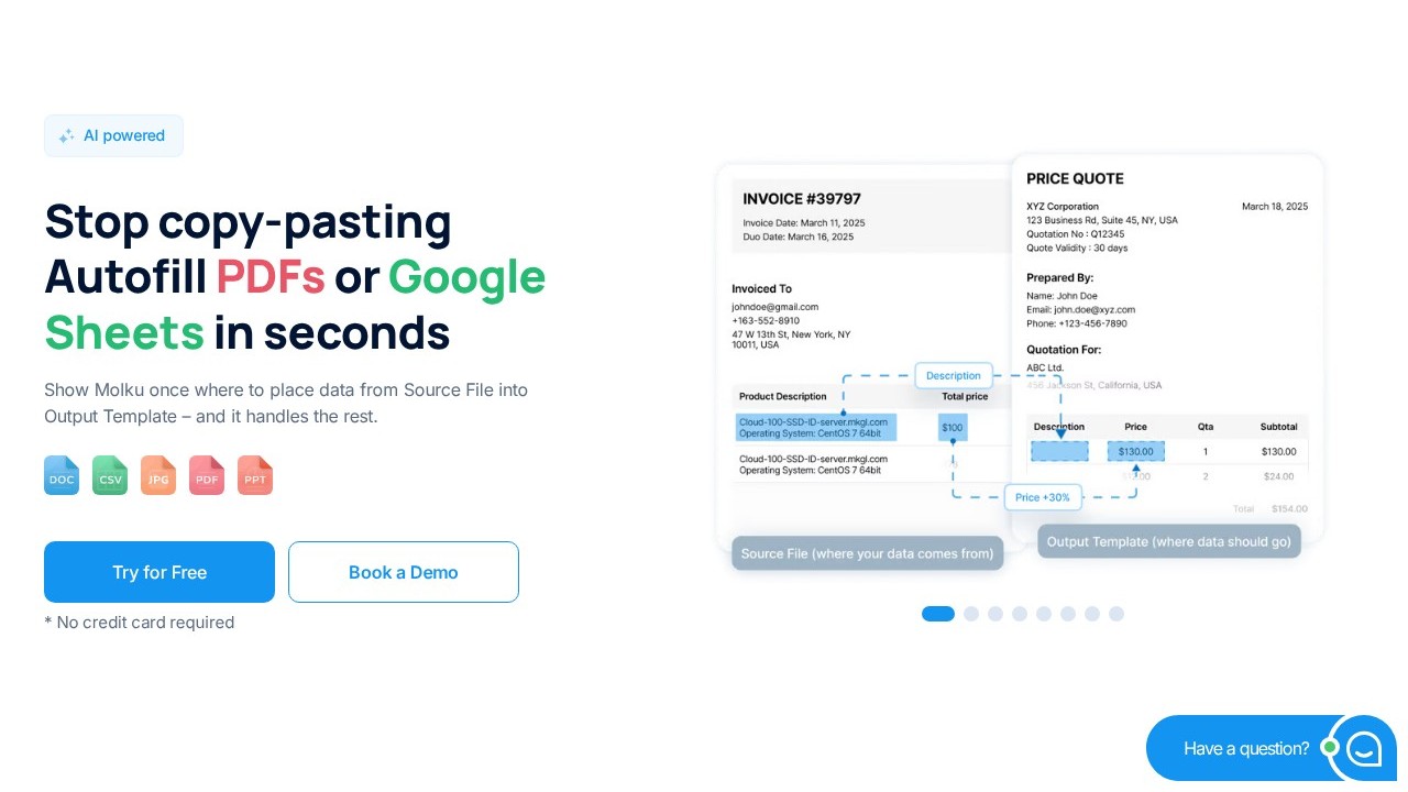Molku is an automated document processing application created to swiftly transform formats and transfer data between PDFs. It effectively extracts details from documents, applies sophisticated modifications during conversion, and supports several languages. By removing the need for manual data entry, it aids businesses and professionals in saving time, decreasing errors, and optimizing workflows that usually require laborious tasks like copying or retyping information. This makes Molku an invaluable asset for anyone frequently dealing with PDF forms, providing notable enhancements in productivity and precision.
