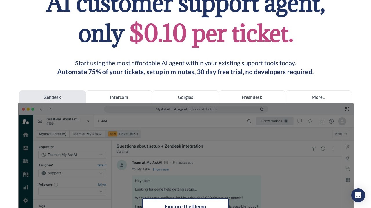 My AskAI is an AI-driven customer support solution that offers immediate, 24/7 help by responding to inquiries using a company's particular knowledge base. It is tailored for businesses of any size, especially small to medium enterprises, aiming to improve customer experience, boost efficiency, and lower support expenses. The tool features automated replies, human handover functionality, customization choices, and compatibility with various platforms, serving as an appealing option for companies looking to optimize their customer support operations and ensure continuous service.