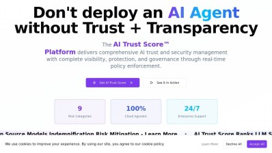 Tumeryk AI is a specialized solution aimed at enhancing and safeguarding the utilization of Large Language Models (LLMs) within organizations. It seamlessly integrates into the data flow between users and LLMs to boost efficiency, security, and cost control. By fine-tuning token usage, managing inputs and outputs, providing solid security measures, and incorporating vulnerability scanning and governance tools, Tumeryk AI aids companies in cutting expenses, boosting performance, and ensuring compliance. Businesses that rely heavily on LLMs for functions like customer support, content creation, and data analysis can gain from Tumeryk AI's capability to streamline operations, secure sensitive data, and uphold regulatory standards.