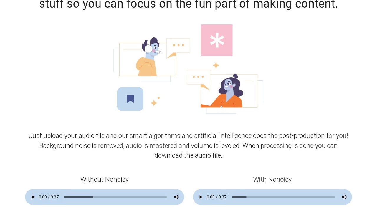 Nonoisy is an AI-powered audio editing tool that employs intelligent algorithms to efficiently and cost-effectively edit digital audio files. It eliminates background noise, masters the audio, and balances the volume, enabling users to concentrate on the enjoyable aspects of content creation.