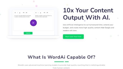 WordAi is a content rewriting tool driven by AI, enabling users to swiftly create original, high-quality material. Utilizing advanced machine learning models, it can rephrase sentences and expressions while incorporating LSI keywords and enhancing readability. Additionally, WordAi simplifies the process of rewriting multiple articles at once, integrating rewriting into any workflow, and exporting rewritten content in bulk.