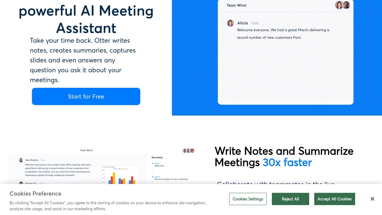 Otter.ai is an automated tool for transcribing meetings and taking notes, designed to help teams maximize the value of their meetings. It can connect with Zoom, Microsoft Teams, or Google Meet to record and distribute notes, emphasize important points, and integrate meeting slides into the notes. Additionally, it offers a keyword summary and an outline to assist teams in swiftly navigating the meeting notes, conducting searches, reading, and listening to the audio.