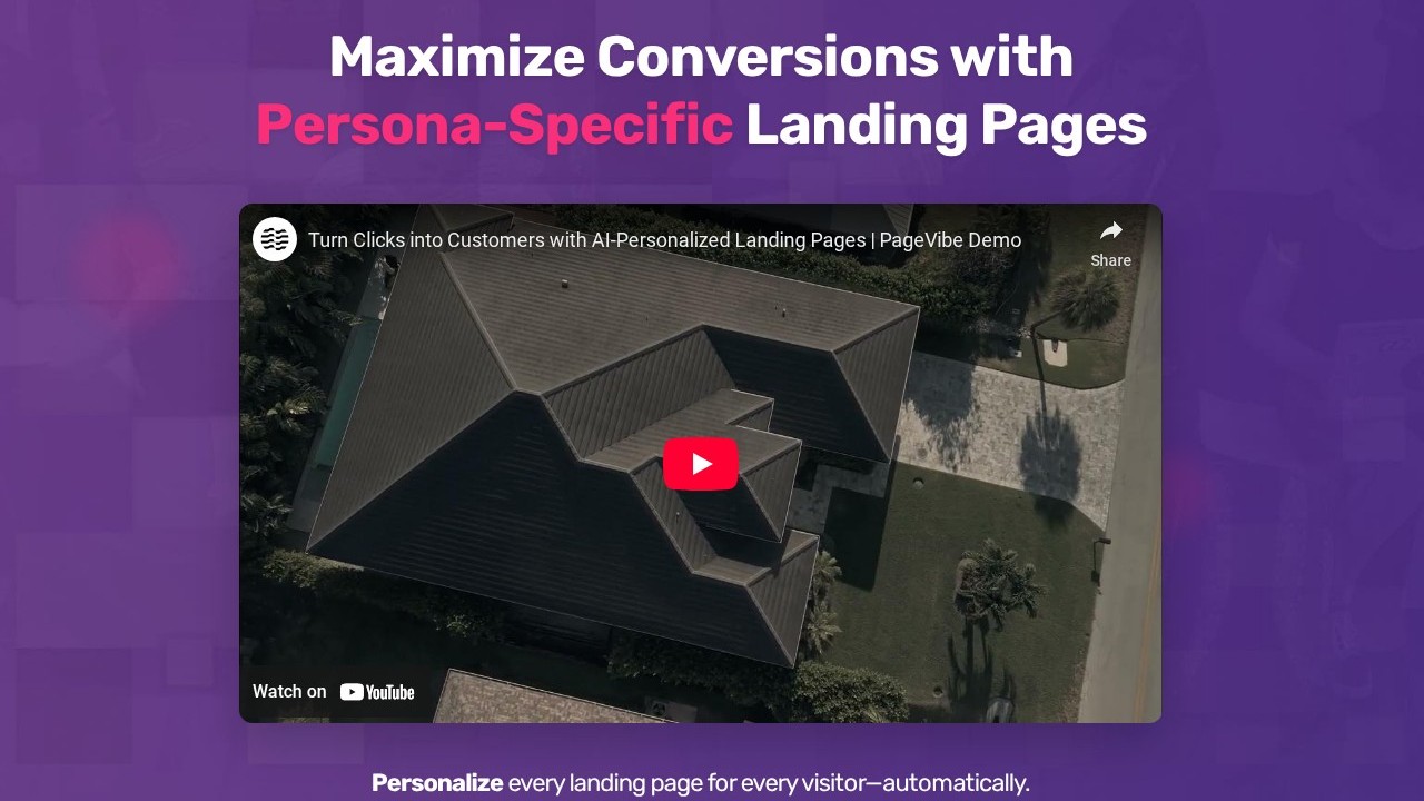 PageVibe enhances PPC campaign performance by employing AI to create landing pages tailored to specific personas. It removes the necessity for manual creation of numerous page versions by providing scalable customization through a no-code visual editor. Suitable for companies of all sizes, it integrates smoothly with current platforms and includes features such as unlimited page variations, easy onboarding, and priority support. The platform allows for unlimited AI personalizations, operates across various websites, and offers enterprise options with dedicated account management. With a risk-free trial and refund policy, PageVibe allows users to explore its personalization abilities, aiming to double conversions with less effort.