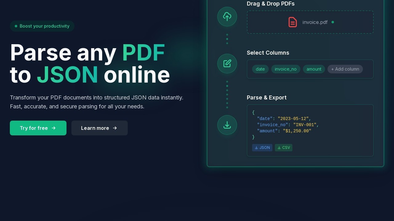 The PDF Parser tool is designed for analyzing and visualizing data to uncover patterns, correlations, and trends. It assists in identifying critical insights and acting upon them. Additionally, it enables the creation of interactive and compelling visualizations, which can effectively communicate your data narrative to stakeholders.
