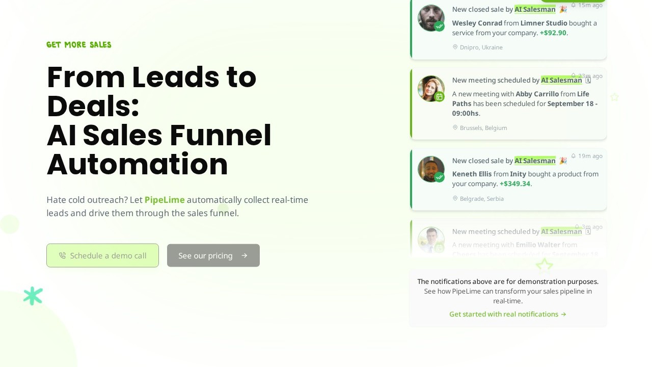 PipeLime is an AI-powered tool for automating sales funnels, aiming to simplify turning leads into sales. It produces high-quality, verified leads automatically, nurtures them with tailored company summaries, and uses AI sales automation to navigate them through the sales funnel, ensuring consistent engagement with timely, personalized email outreach. Businesses might use PipeLime to boost sales efficiency, enhance email deliverability, and raise conversion rates without relying on cold outreach or manual lead management, making it a vital resource for companies seeking to expand their customer base and revenue with minimal effort.