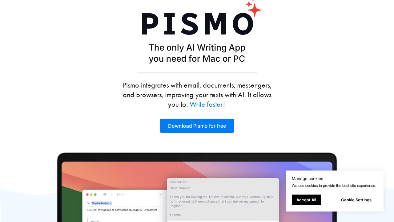 Pismo is a writing assistant driven by AI that improves written communication on multiple platforms. It includes capabilities such as proofreading, text adjustment, translation, and personalized prompts to enhance the quality and efficiency of writing and broaden its global appeal. Individuals from professionals to students can take advantage of Pismo's functionality to simplify the writing process, surmount language challenges, and generate superior content customized for specific requirements and contexts.