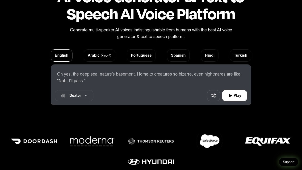 This AI-driven voice generator and lifelike text-to-speech (TTS) audio converter leverages an online AI Voice Generator and top-tier synthetic voices to swiftly produce natural-sounding, high-quality audio in MP3 and WAV formats. Craft personalized voiceovers for videos, e-learning modules, podcasts, IVR systems, and more, with access to over 132 languages and accents, along with comprehensive SSML support.