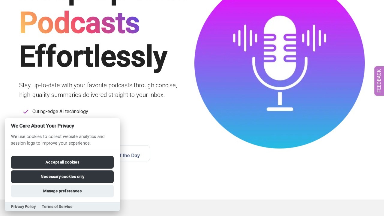 PodSnap.AI is a platform leveraging artificial intelligence to create brief summaries of podcast episodes, which are then sent straight to users' email inboxes. It provides both written and audio summaries, helping busy people keep up with their favorite podcasts without needing to listen to the entire episodes. This service is particularly advantageous for podcast fans, professionals, and anyone looking for efficient content consumption. It saves time, aids in prioritizing listening preferences, and guarantees users receive crucial information from their chosen podcasts.