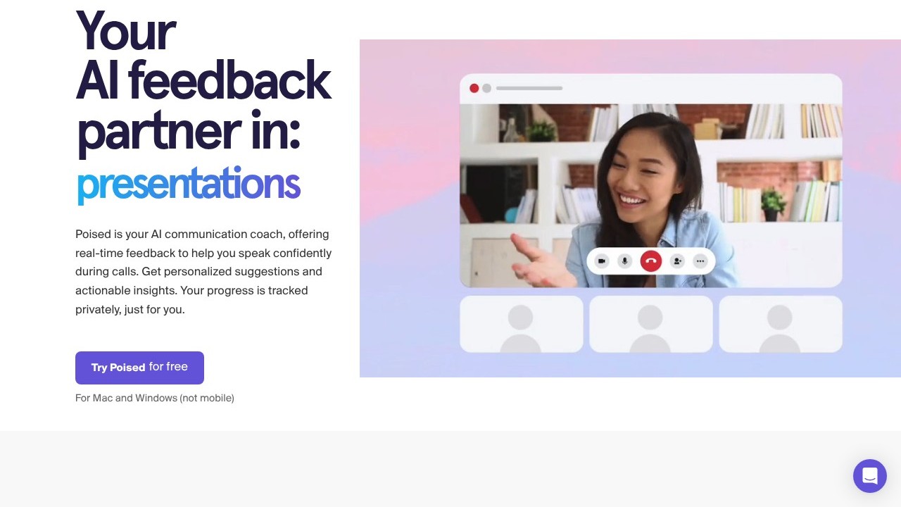 Poised is an AI-driven communication coach designed to help users communicate confidently and clearly. It gives immediate feedback on commonly used words, filler words, confidence, energy, empathy, and other factors. Additionally, it offers comprehensive analysis for tracking progress and personalized plans featuring specially curated learning content by Poised experts. It is ideal for Product Managers, Revenue Teams, Interviewing, and Marketing professionals.