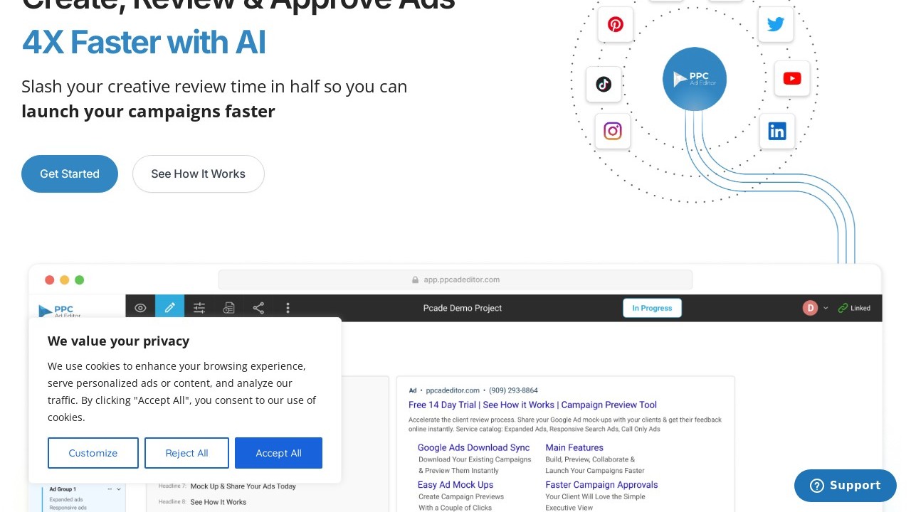 PPC Ad Editor is a web-based application designed for agencies and teams to develop, collaborate, evaluate, and approve ad mockups for multiple advertising platforms such as Google, Facebook, Instagram, and others. This tool aids in visualizing ad copy, campaigns, ad groups, and extensions while optimizing the review and approval workflow. By automating various aspects, it eliminates the need for spreadsheets, minimizes errors, and saves time. Team members can work together and receive immediate feedback from reviewers and collaborators. Once finalized, campaigns can be exported to Google Ads Editor, and comprehensive audit trails can be created. Additionally, the tool offers AI-driven ad copy generation for Google Ads campaigns, facilitating the quick idea generation for ad copy.