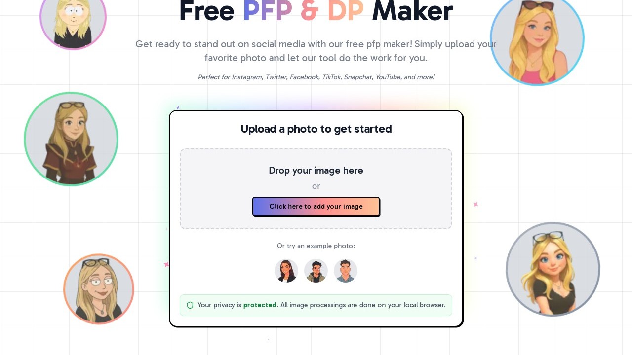 Postcraft's PFP Maker is an online utility designed for creating personalized profile images for social media. Users can upload a picture, and the tool will automatically eliminate the background, producing hundreds of distinctive profile pictures. It's ideal for crafting profile images for platforms like Instagram, Twitter, Facebook, TikTok, Snapchat, YouTube, and others. The tool is available for free and does not require registration.