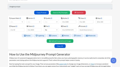 MidJourney's Prompt Tool is a robust feature enabling users to swiftly create intricate midjourney prompts within seconds, using straightforward parameters that can be adjusted. It enables users to modify the emphasis of their main prompt and its related styles and incorporate negative weights for terms to avoid. This results in generating more tailored and focused outputs efficiently and effortlessly.
