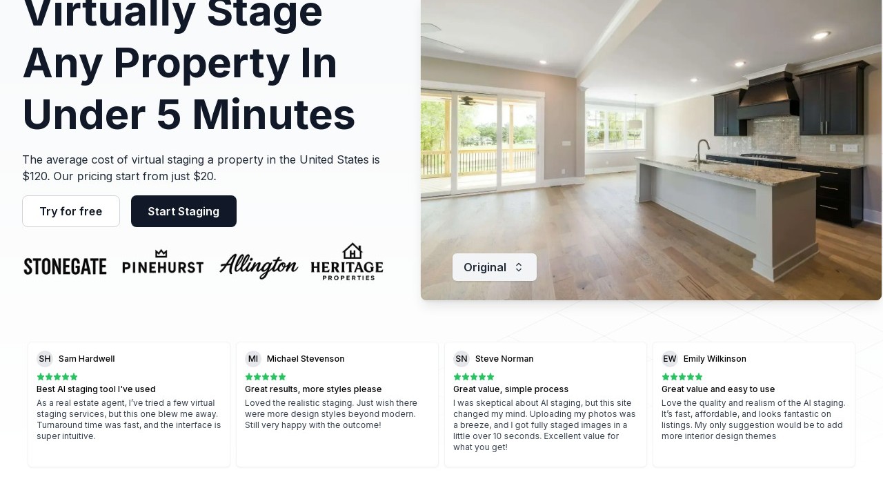 PropStyle.ai is an AI-driven platform designed to improve property styling and visualization for real estate experts and home sellers. It converts regular property photos into digitally staged images featuring contemporary furniture and decor, enabling users to display a property's full potential without the expenses and logistics associated with physical staging. Real estate agents, property managers, and homeowners can use PropStyle.ai to craft more attractive listings, draw in potential buyers, and ultimately sell properties more quickly and at higher prices through engaging visual presentations.