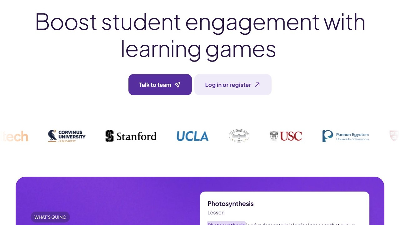Quino is a study aid enhanced by AI that enables users to upload documents or research papers, creating tailored notes, summaries, bullet points, and quiz questions. Additionally, it features a chat function for retrieving contextual information and references from within the document and provides tools for organizing notes and learning materials to boost productivity.