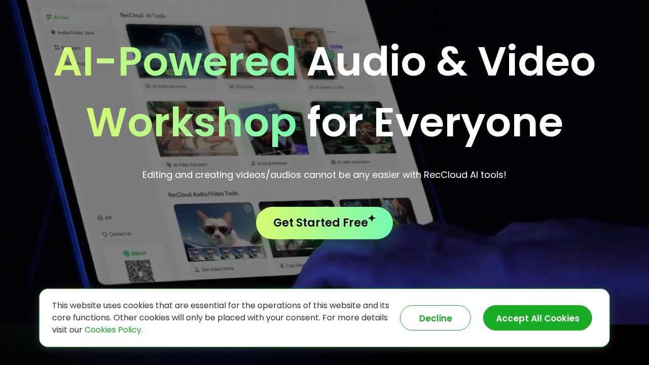 RecCloud is a multimedia service platform powered by AI that provides an extensive array of tools for processing video and audio. This includes screen recording, AI video chatting, generating subtitles, voice-to-text conversion, video editing, and cloud storage. It is tailored to boost efficiency in multimedia content creation and sharing across various fields such as education, gaming, finance, and medical seminars. Users might be drawn to RecCloud for its user-friendly interface, the ease of online access without downloading, the secure cloud storage, and its cutting-edge AI features that streamline complex tasks like summarizing video content and translating subtitles, offering a comprehensive solution for both professional and personal multimedia projects.