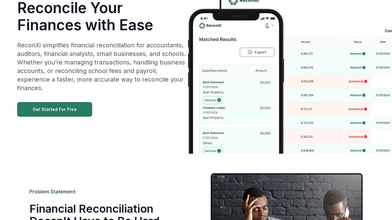 ReconXi is an AI-driven tool for financial reconciliation that aids businesses in swiftly aligning bank statements with their company ledgers. Users can upload their financial records in CSV format, allowing the AI to automatically discern matched and unmatched transactions. The platform features a reconciliation dashboard with clear status indicators and facilitates quick data exports. By eliminating the need for manual transaction matching, it reduces errors and saves time. ReconXi is crafted for efficiency, providing an intuitive self-serve experience for financial teams. The tool might integrate with accounting software in the future to make financial reconciliation more accessible and convenient for businesses.