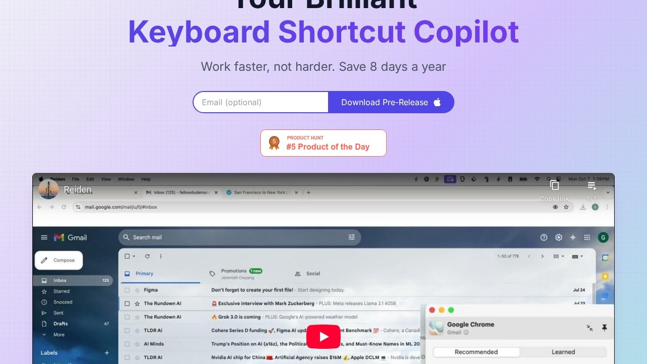 Reiden AI is a productivity assistant driven by artificial intelligence, designed to help users excel in keyboard shortcuts across various applications. It evaluates user interactions in real-time, offering customized shortcut recommendations to optimize workflows and enhance efficiency. By minimizing mouse usage and automating repetitive tasks, Reiden AI can help users save valuable time and potentially lower the risk of repetitive strain injuries. This complimentary tool is perfect for tech experts, developers, and anyone aiming to improve their productivity through smarter computer use.