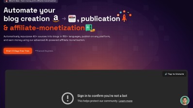 Blogify.ai is an artificial intelligence-based tool developed for bloggers, marketers, and content creators. It simplifies content creation by producing high-quality, SEO-friendly blog posts from simple concepts or keywords, transforming video and audio content into text, and providing support in multiple languages. People may opt for Blogify.ai to save time, boost their content's search engine ranking, extend their worldwide audience, and increase productivity with collaboration tools and content scheduling features.