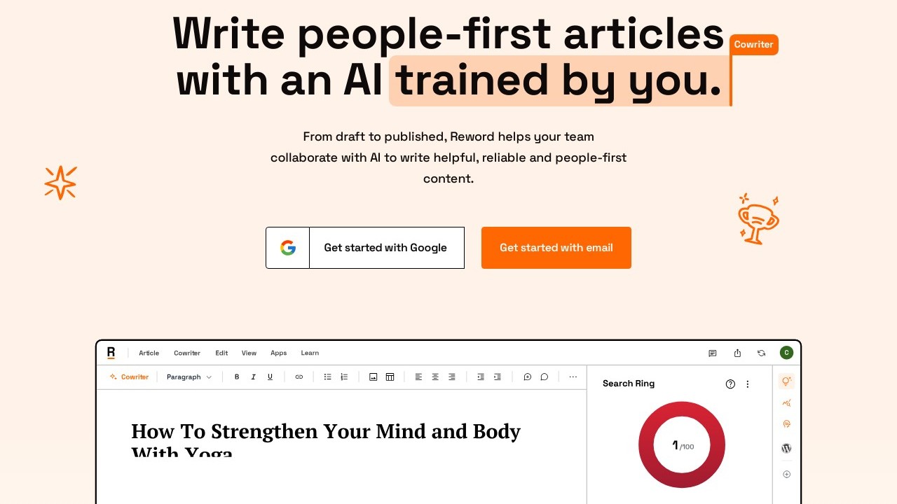 Reword is an AI-driven editing tool designed to assist teams in crafting improved articles for their audiences. It aids teams in research, writing, and optimization, enhancing the performance of their articles. Reword enables collaboration between humans and AI, offering version control and search insights to help teams refine their content.