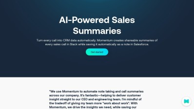 Momentum is a workflow automation platform designed for revenue teams, featuring AI-driven call summaries and automated Slack channels for sales deals. It delivers notifications and alerts from sales tools, streamlines automated CPQ approval processes, and allows for custom automations. The platform aids in detecting churn and pipeline risks, ensures opportunities are current in Salesforce, integrates with Google Calendar, and links tasks to other tools such as Asana.