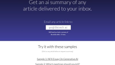 SkimIt is an AI-driven tool designed to enable users to swiftly receive article summaries by sending a link to go@skimit.ai via email. It also offers draft tweets and a LinkedIn post to facilitate easy sharing of the summary with others. The summaries are created using OpenAI's GPT technology and their accuracy is not guaranteed. SkimIt only stores the email address of the sender, any CC'd email addresses, and the initial URL included in the email.