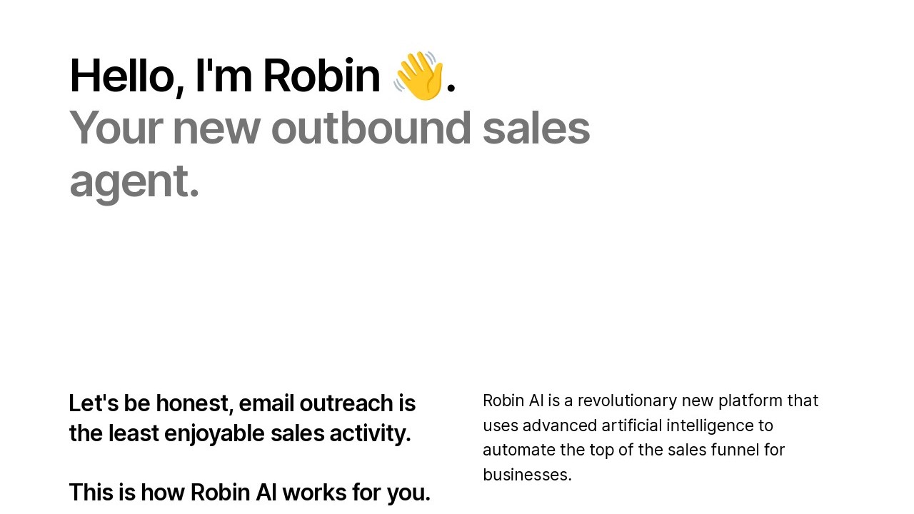 Robin AI is an automated sales tool leveraging artificial intelligence and machine learning to assist businesses in automating the initial stages of their sales process. It can compose and dispatch emails, modify content according to lead data, and develop objection-handling messages. Additionally, it integrates with prominent CRMs, SMS, chat, and voice systems, making it suitable for targeted outreach, email marketing, customer retention, and initial lead generation efforts.