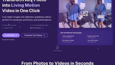 FuturMotion is a tool enhanced by AI that transforms static photos into animated videos with a single click, tailored for sectors such as fashion, food, electronics, home decor, and ecommerce. By uploading images and choosing from expertly designed templates, users can quickly create high-quality videos without any editing skills. The platform includes brand customization features like camera and lighting controls, delivering results ideal for websites, social media, and marketing. Offering launch pricing and a risk-free trial, it aims at creators looking for quicker content production, boasting up to 500% increased engagement and creating videos 10 times faster than manual techniques.
