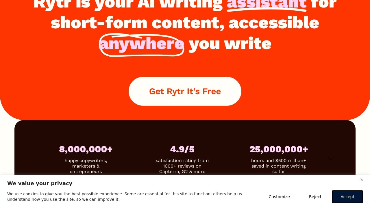 Rytr is an exceptional AI writing assistant designed to help you produce high-quality content in seconds at a minimal cost. With Rytr, you can effortlessly generate outstanding content using over 40 templates and use cases, write in more than 30 languages, and apply over 20 tones of voice, along with scientific copywriting formulas like AIDA and PAS. Facilitate your writing process with the powerful rich-text editor, allowing you to transform raw ideas into polished text quickly, with extensive formatting options and a plagiarism checker. Take your writing assistant anywhere with the browser extension, and efficiently manage your writing process with team account access and billing all in one place. Enjoy all these features without breaking the bank by subscribing to the Saver or Unlimited plans. Say goodbye to writer's block and start creating with Rytr today!