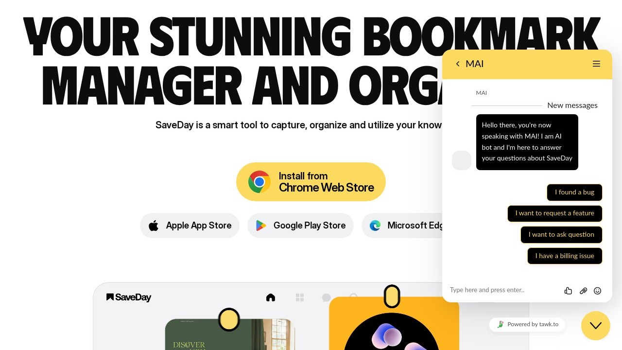 SaveDay is an adaptable tool crafted to enhance the organization and retrieval of content. It acts as an all-inclusive knowledge base, enabling users to effortlessly store diverse content types such as images, videos, and articles. Equipped with a user-friendly search feature, users can find saved content using various criteria like color, brand, date, or keywords. Additionally, SaveDay provides instant summaries, making it easier to grasp and share content through visually appealing templates. Other functionalities include reminders, bookmark management, and options for sharing highlights on social media. Targeted at a broad range of users, from students to entrepreneurs, SaveDay makes knowledge management more straightforward.