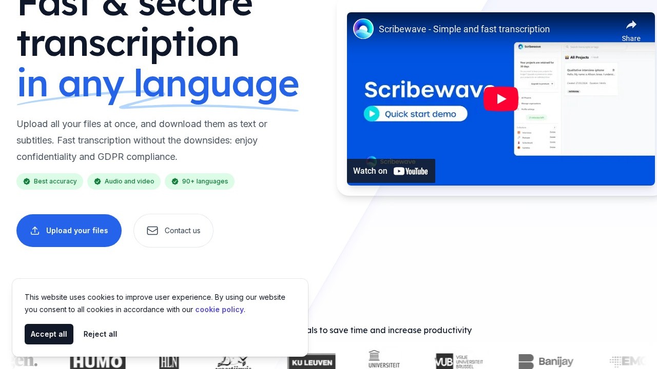 Scribewave is an AI-driven tool that seamlessly converts audio and video files into transcripts, captions, and subtitles across more than 90 languages. It provides automatic transcripts with 99% precision, offers video subtitling, and allows for easy export across multiple formats, along with an audio-to-video function. Users can begin for free, with pricing plans available for handling additional files. The tool has garnered favorable feedback and is ideal for various sectors, including education, media production, and legal documentation. With its efficiency and cost-saving attributes, Scribewave seeks to transform workflows and support users in achieving their objectives more effectively.